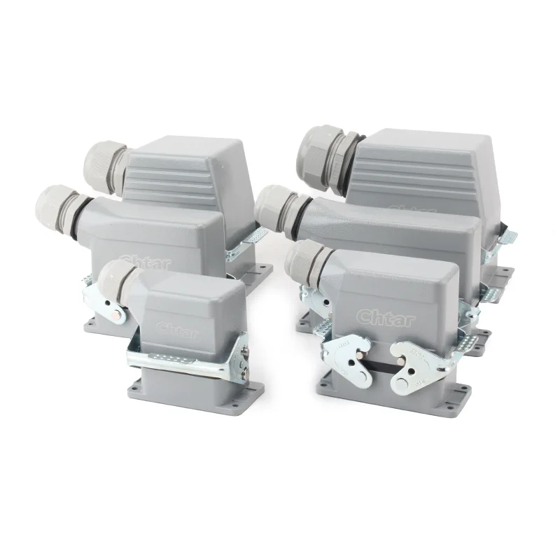 Konektor Tugas Berat 24 Pin AG yang tahan lama yang dirancang dan diproduksi oleh CHTAR cocok untuk konektor tugas berat 24-pin HE, HD, HEE, HDD dan lainnya. Konektornya terbuat dari paduan aluminium dan dilapisi bubuk abu-abu RAL7037. Arus pengoperasiannya adalah 16A, tegangan pengoperasian 500VAC, kisaran suhu pengoperasian -40℃ hingga +125℃ (-40℉ hingga +257℉), siklus plugging dan unplugging adalah 500 kali, dan tingkat perlindungannya adalah IP65.