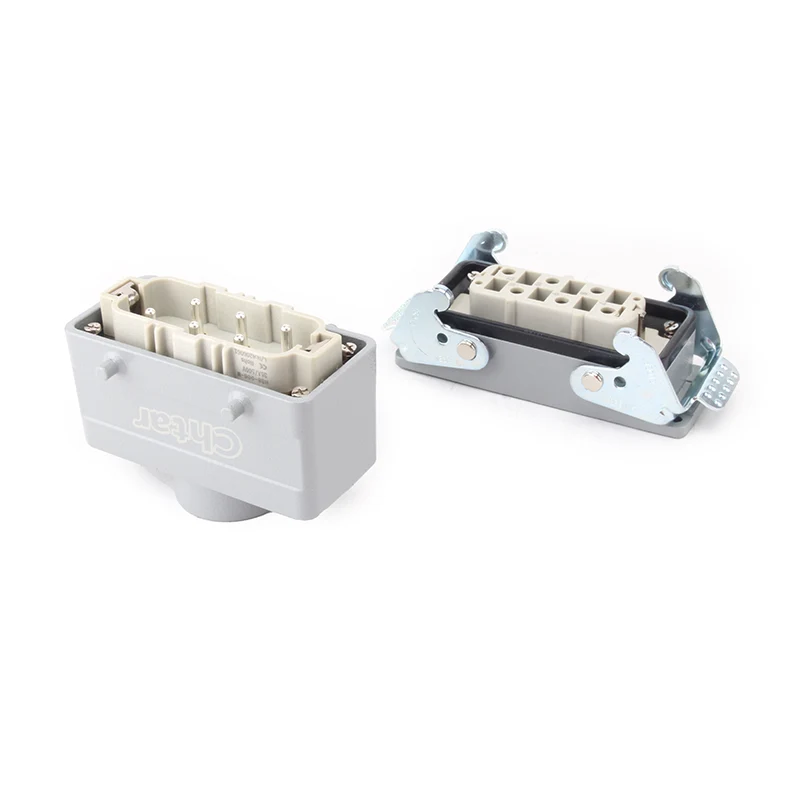Konektor Tugas Berat Sisipan 6 Pin 35A dikerjakan Rumah aluminium H16B dari konektor tugas berat. Itu terbuat dari bahan PC yang kuat dan kuningan berlapis perak. Pin kuningan CHTAR dilapisi dengan perak dengan kualitas yang baik dan konduktivitas listrik yang lebih baik. Ini mengandung karet segel untuk menjadikannya fitur tahan air yang baik.