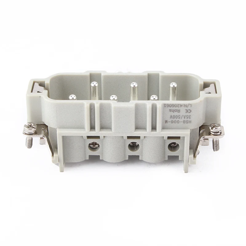 HSB-006-M HSB Konektor tugas berat bekerja di bawah arus 35A. Konektor Tugas Berat Sisipan 6 Pin 35A adalah 6 pin atau ganda 12 pin untuk bersentuhan dengan kabel. Ini ditawarkan untuk kondisi kerja yang berbeda, dan populer digunakan dalam industri otomatis dan jenis sambungan kabel mesin.