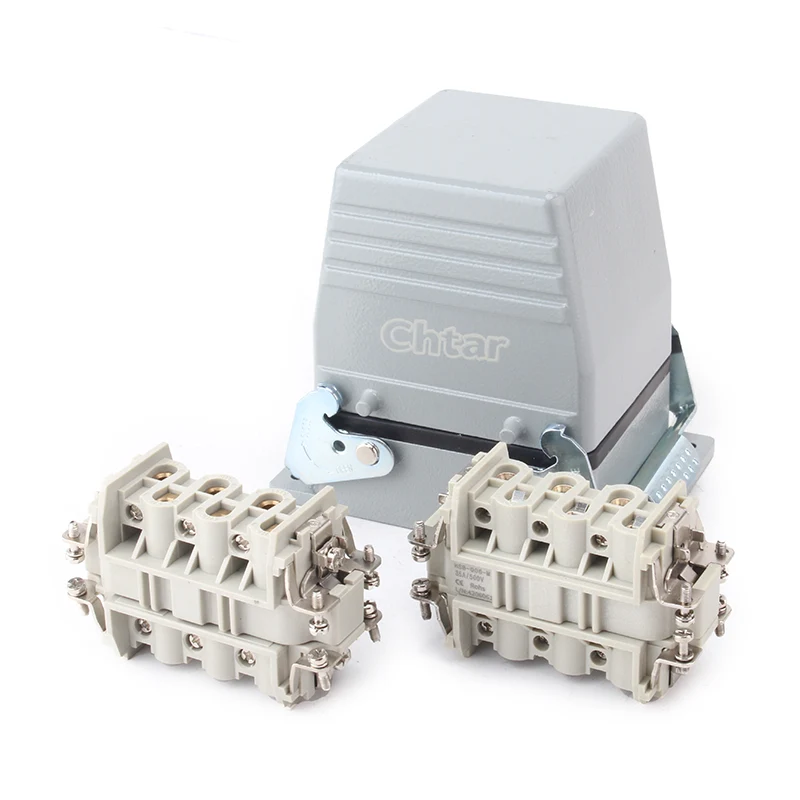 Konektor Tugas Berat Sisipan 35A 6 Pin CHTAR berkualitas tinggi ini cocok dengan rumah konektor tugas berat rumah 35A H16B-TG atau H16B-TS. Itu terbuat dari bahan PC berkekuatan tinggi dan dirakit dengan 6 pin dalam wadah aluminium H16B. Bisa juga 12 pin, menjadikannya dua kali lebih banyak dari H32B-TG atau H32B-TS.