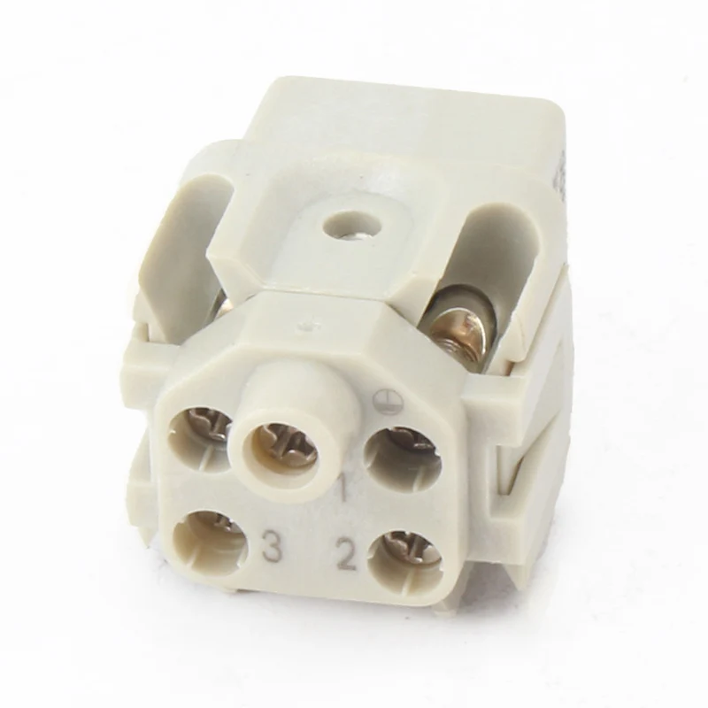 F HA 4 Pin Insert Heavy Duty Connector adalah bagian inert betina, dicocokkan dengan HA-004-M jantan sebagai satu set. Ia juga membutuhkan rumah aluminium untuk bekerja sama. Perumahan dapat melindungi bagian-bagian yang dimasukkan lagi dari air dan debu. Ini adalah 4 pin normal dengan satu pin lagi untuk koneksi ground. Ini terbuat dari cangkang PC dan pin kuningan berlapis perak. Pin berlapis perak menjadikannya sambungan listrik yang baik.