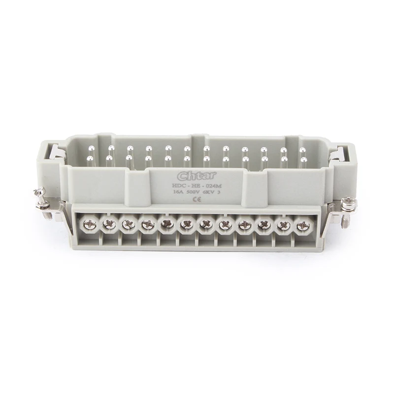 Konektor Tugas Berat Sisipan M/F 24 Pin adalah bagian sisipan dari konektor tugas berat HDC-HE-024. Mereka terbuat dari PC dan pin kuningan. Bagian sisipan dan bagian rumah aluminium dirakit sebagai satu set konektor tugas berat yang lengkap. Bagian sisipan adalah fungsi sambungan listrik dan rumah aluminium adalah bagian sisipan yang dilindungi. Terserah perlindungan IP65.