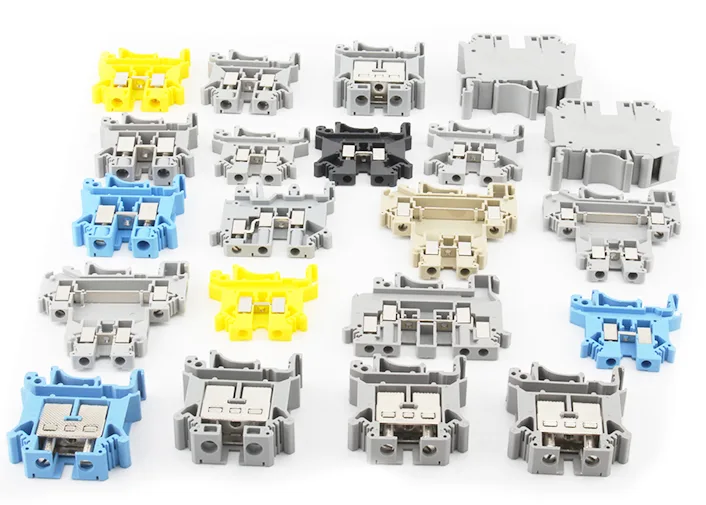 Pabrik kami menawarkan kustomisasi warna cangkang OEM untuk berbagai posisi dan fungsi. Blok terminal rel din sekrup terbaru tersedia dalam warna standar seperti abu-abu, kuning, merah, hitam, hijau, coklat, dan oranye untuk menyesuaikan berbagai kebutuhan pasar.